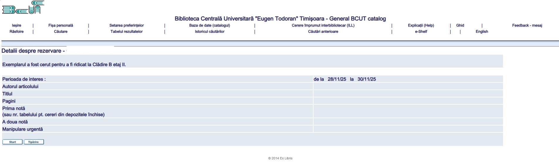 Biblioteca nu-și asumă anunțarea utilizatorilor de disponibilitatea publicațiilor ce au fost rezervate – vă rugăm să vă verificați fișa personală în mod regulat, după plasarea unei rezervări.